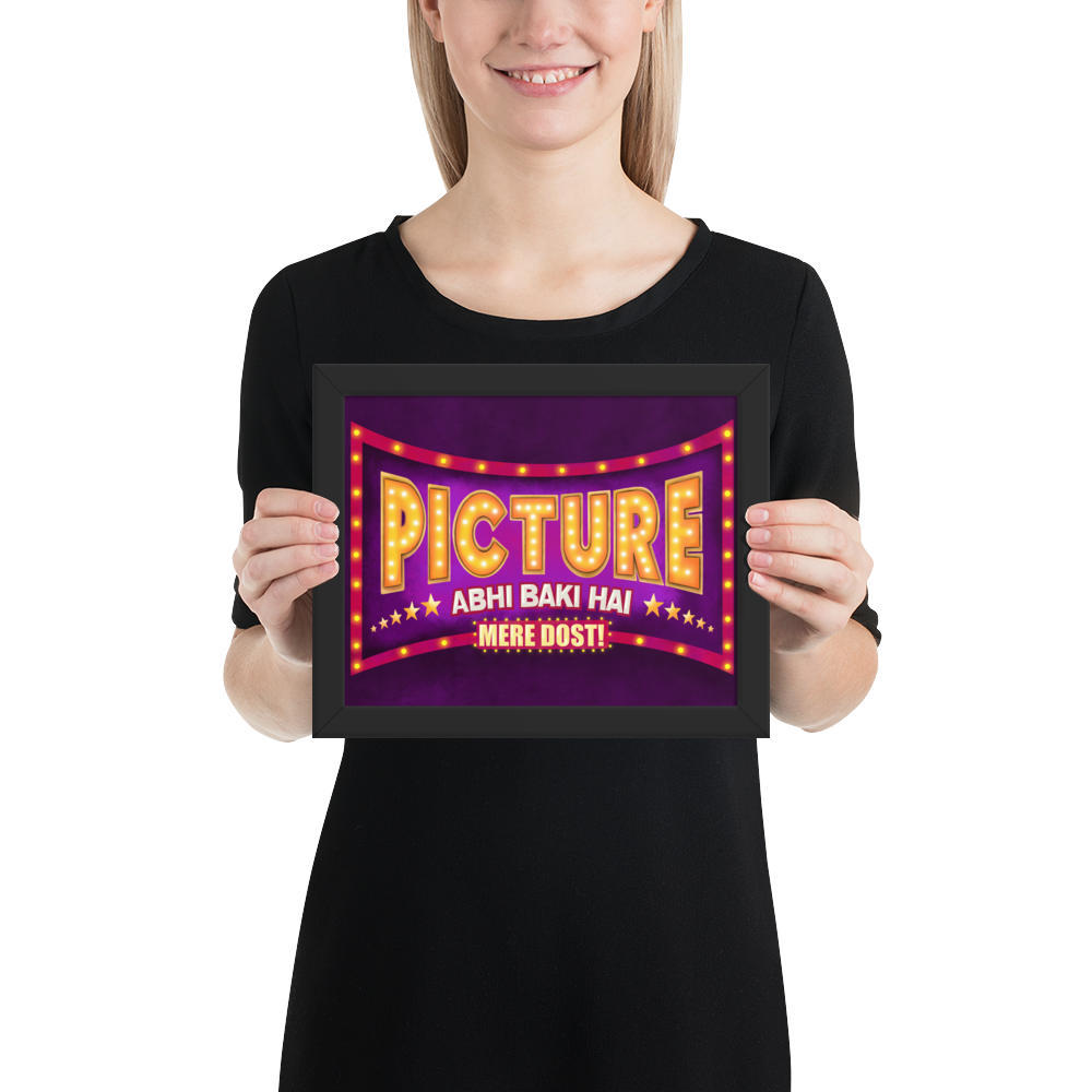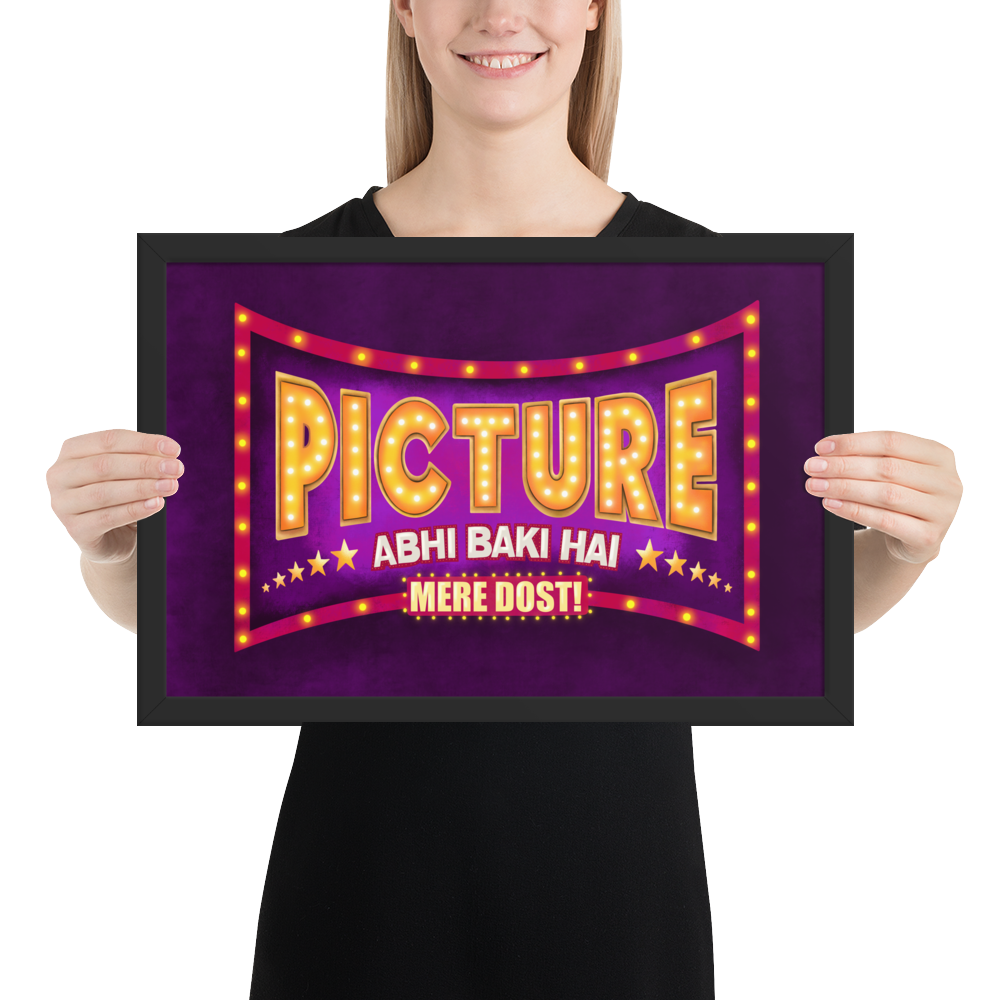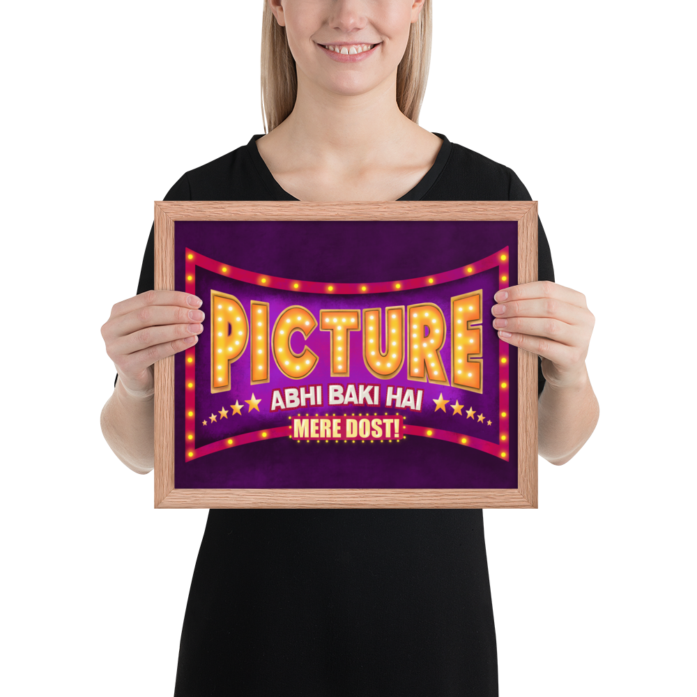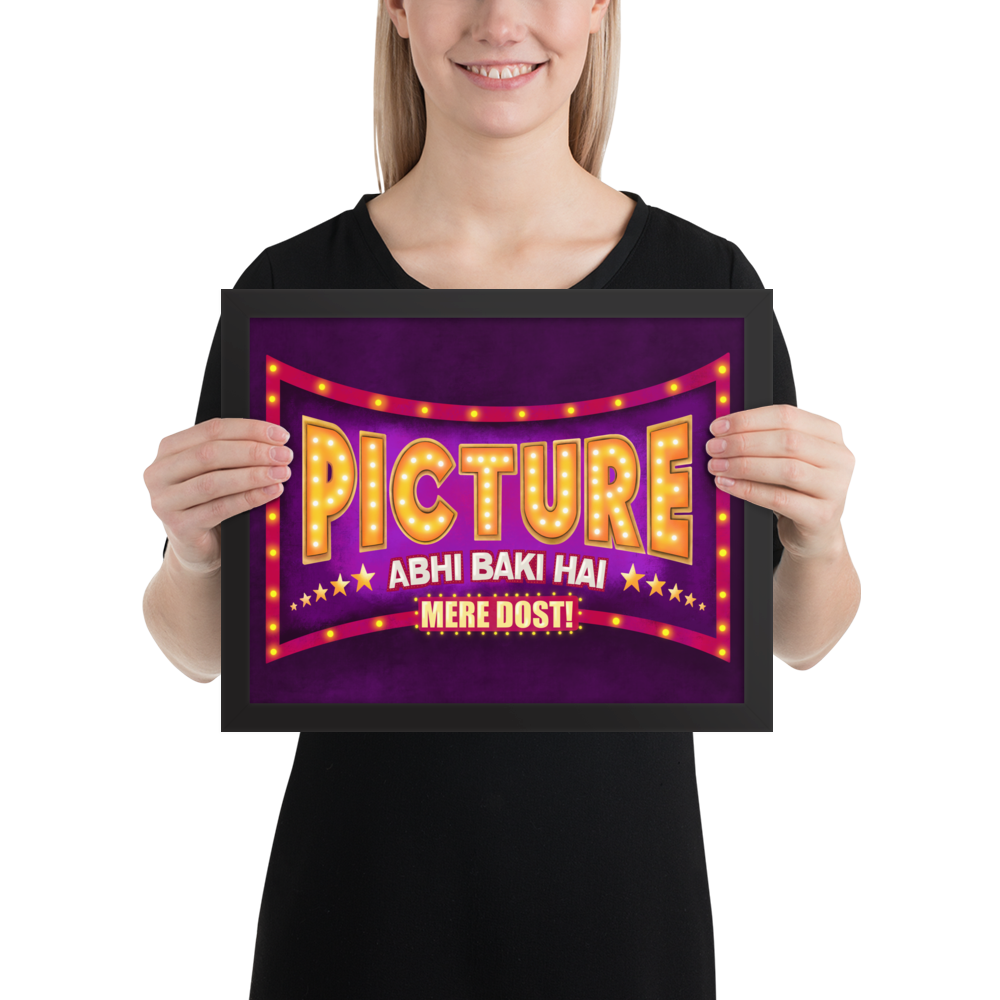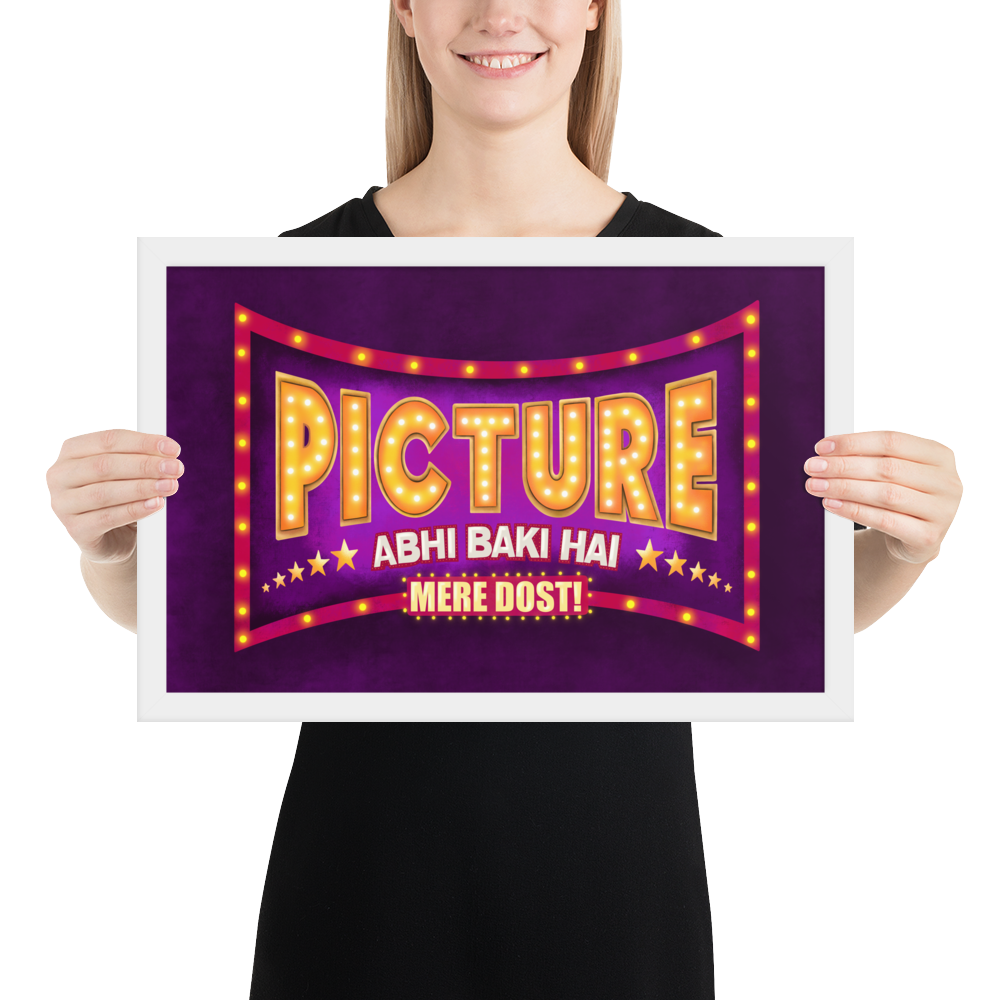 If you're looking for a fun Indian Bollywood style Wall Art to revive your space's aesthetics then look no further. This beautiful and colorful desi pop art that says "Picture Abhi Baki Hai Mere Dost!" not only is gonna change the whole look of your space but will also be the motivating and inspiring wall art you need!