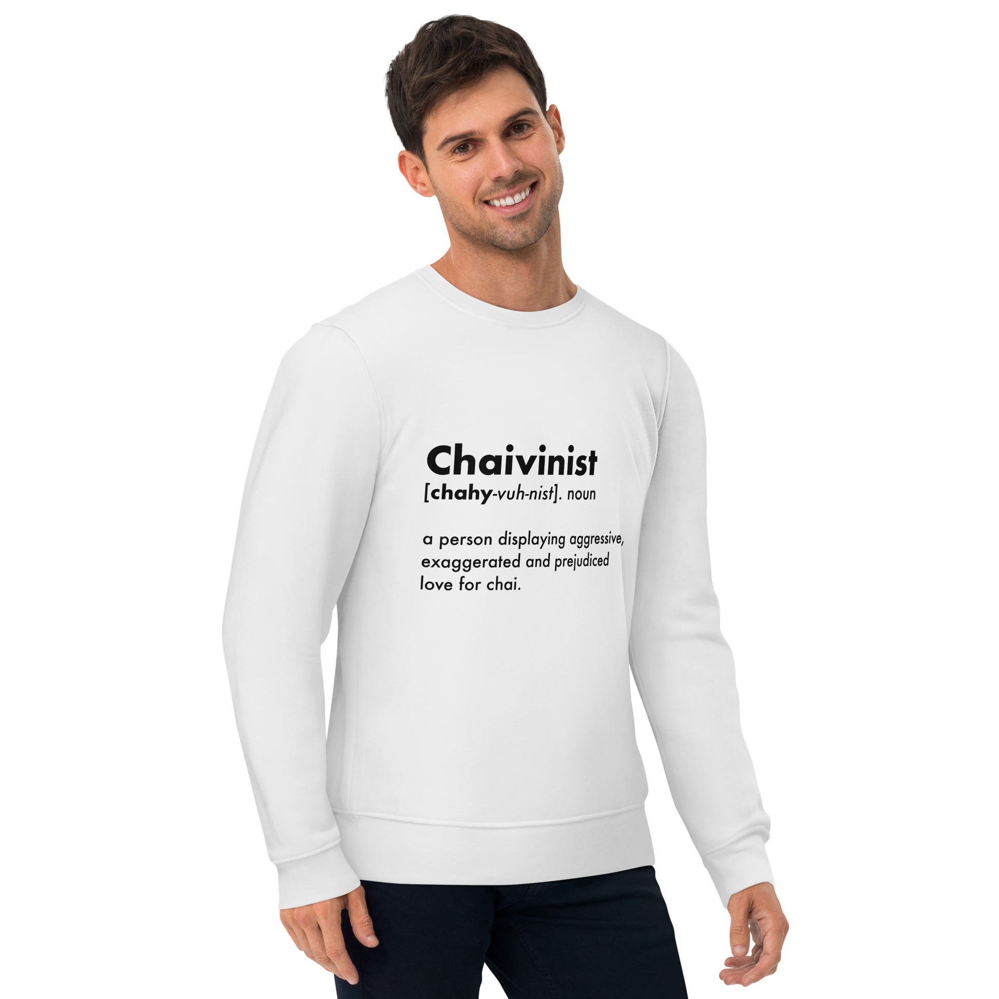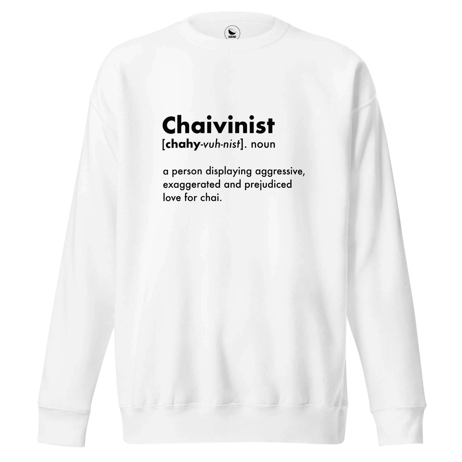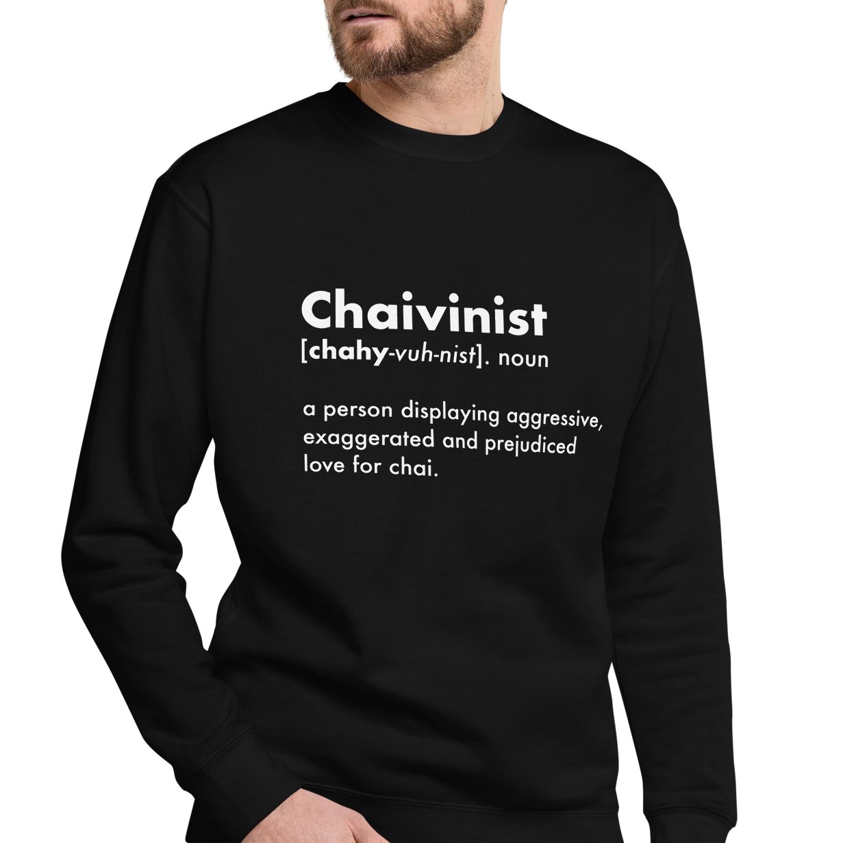 Let your Chai Lover flag fly in this Minimal Chaivinist Sweatshirt. Featuring a minimal black and white design, this breathable sweatshirt celebrates those who fuel their passions with a warm of cup of chai tea. Show your South Asian pride, from the India & Pakistan to the ends of the earth, with a cool Chaivinist definition that is sure to amuse and surprise. Let your style make a statement without saying a word!