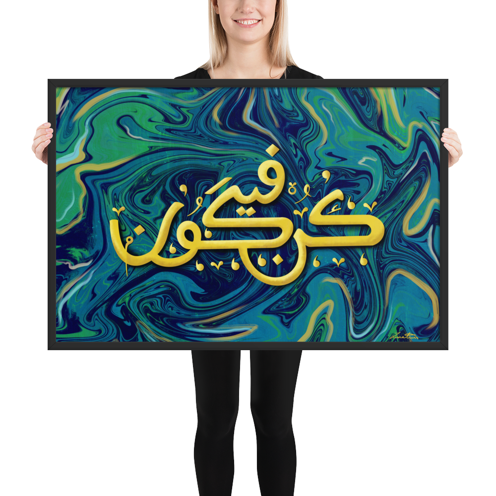 Enlighten up your space with this beautiful Kun Faya Kun Islamic Art Print designed by local Canadian Pakistani Artist. Bring the blessings in your place with this beautiful Islamic Calligraphy Art that you can look at every morning and start your day blissfully.