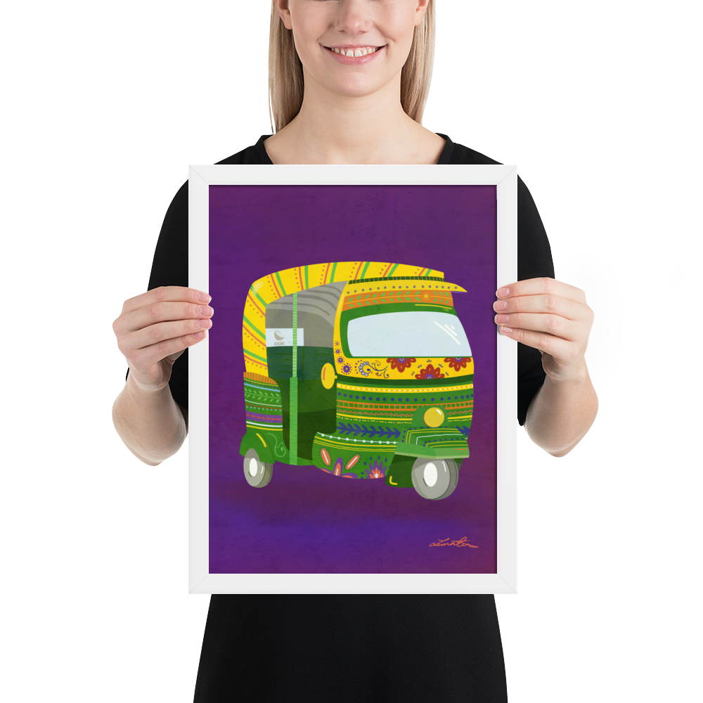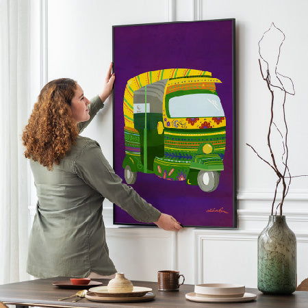This desi Indian Rickshaw art poster is our homage to beautiful rickshaw art representing the exuberant colors of life back home. This is a perfect desi indian wall art gift to someone who's feeling a little home-sick or has recently moved out. Also a very beautiful addition to any household who wants some Indian decor or a little desi art touch on their walls.